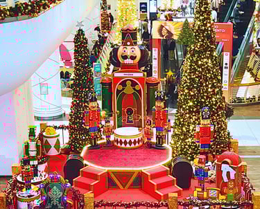 Allestimento natalizio incantevole, dominato da un gigantesco schiaccianoci al centro, che funge da guardiano di questo magico mondo. Intorno a lui, un' atmosfera festosa è creata da luci scintillanti, alberi di Natale decorati con ornamenti colorati e fiocchi di neve. Scene della favola, con decorazioni che richiamano i personaggi del racconto: ballerine, e caramelle giganti. Il laboratorio creativo per bambini è allestito con tavoli pieni di materiali per realizzare lavoretti natalizi da portare a casa. L'aria è pervasa da profumi di cannella e dolci natalizi, mentre una musica festiva accompagna le risate e la gioia dei bambini. Un' esperienza immersiva che celebra la magia del Natale e la fantasia della favola dello schiaccianoci!