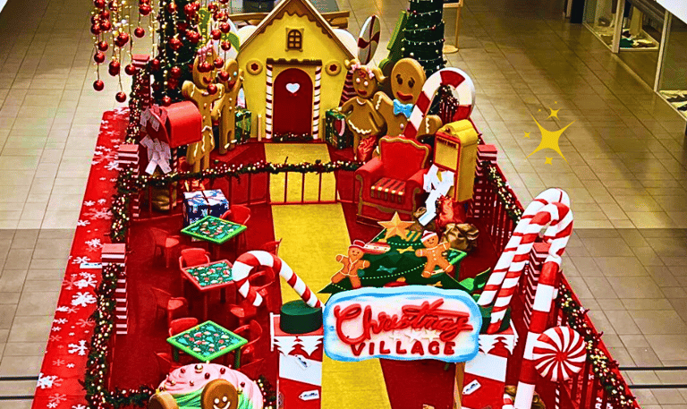 Un incantevole villaggio di Babbo Natale prende vita, avvolto da un' atmosfera magica e dolce. Casette di zucchero adornano il paesaggio, mentre ometti di marzapane danzano tra luci scintillanti. I laboratori per bambini, decorati con caramelle colorate, offrono attività creative, dove i piccoli possono realizzare biscotti e decorare dolcetti. Un grande trono di Babbo Natale, circondato da un mare di leccornie, attira famiglie pronte a scattare foto e condividere desideri. L' aria è permeata da profumi di vaniglia e cannella, rendendo questo allestimento un vero paradiso per gli amanti dei dolci e della magia natalizia.